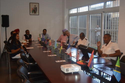 [/vc_column_text][/vc_column_inner][/vc_row_inner][/vc_column][/vc_row][vc_row][vc_column][vc_column_text]12 mai 2017 : Réunion de présentation officielle du projet d’opérationnalisation du Centre Régional de Fusion d’Informations Maritimes, plateforme de fusion des informations maritimes échangées entre les Etats membres de la Région d’Afrique Orientale, Australe et Océan Indien et leurs partenaires, hébergée officiellement par Madagascar à travers le CFIM depuis le 18 février 2016, aux représentations diplomatiques et chancelleries étrangères sises auprès de la République de Madagascar. (au Local du Ministère des Affaires Etrangères Anosy)[/vc_column_text][vc_column_text]